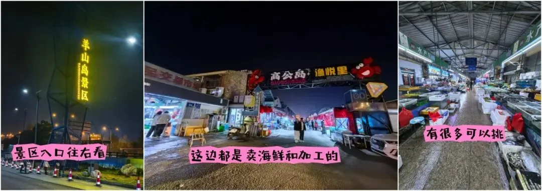 羊山岛停车场的入口处有很多卖海鲜的摊位。买好之后就可以去加工。如果想体验一下新鲜海鲜可以自己买了去加工,位置如图