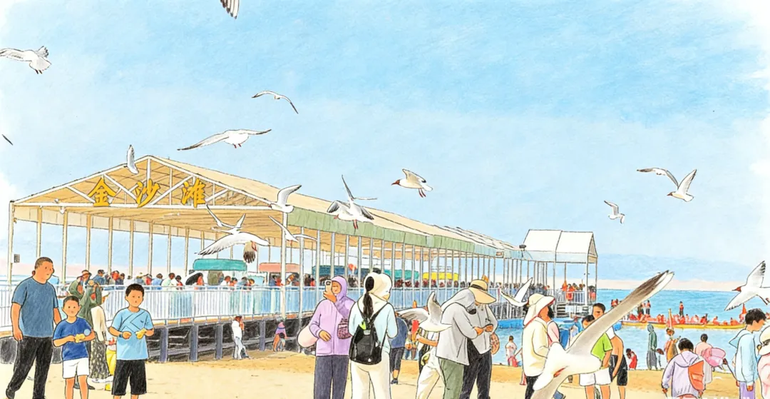 金沙滩坐落于博斯腾湖东北岸,距和硕县城40公里,拥有2000米金色细沙,是国家4A级景区与自治区级旅游度假区。沙滩细腻、湖水湛蓝,快艇、星空民宿、全国沙排赛等赛事在此精彩上演。