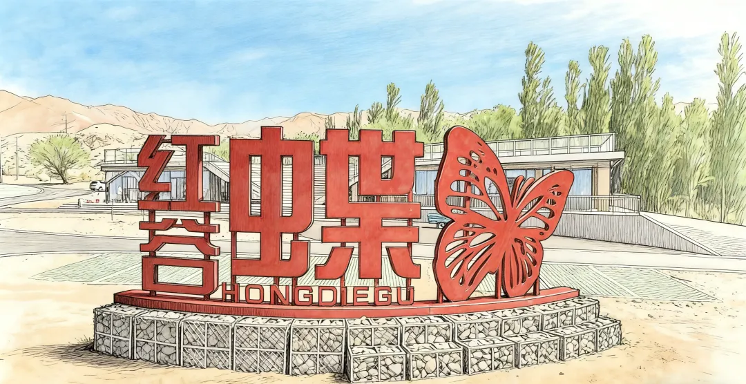红蝶谷景区坐落于新疆巴州和硕县曲惠镇境内,距离县城26公里,因谷内有成千上万只红蝴蝶繁衍生息而得名“红蝶谷”。每年5—7月,谷内榆树抽芽展叶之际,数以万计的红蝴蝶便会破茧而出、成群翩跹。