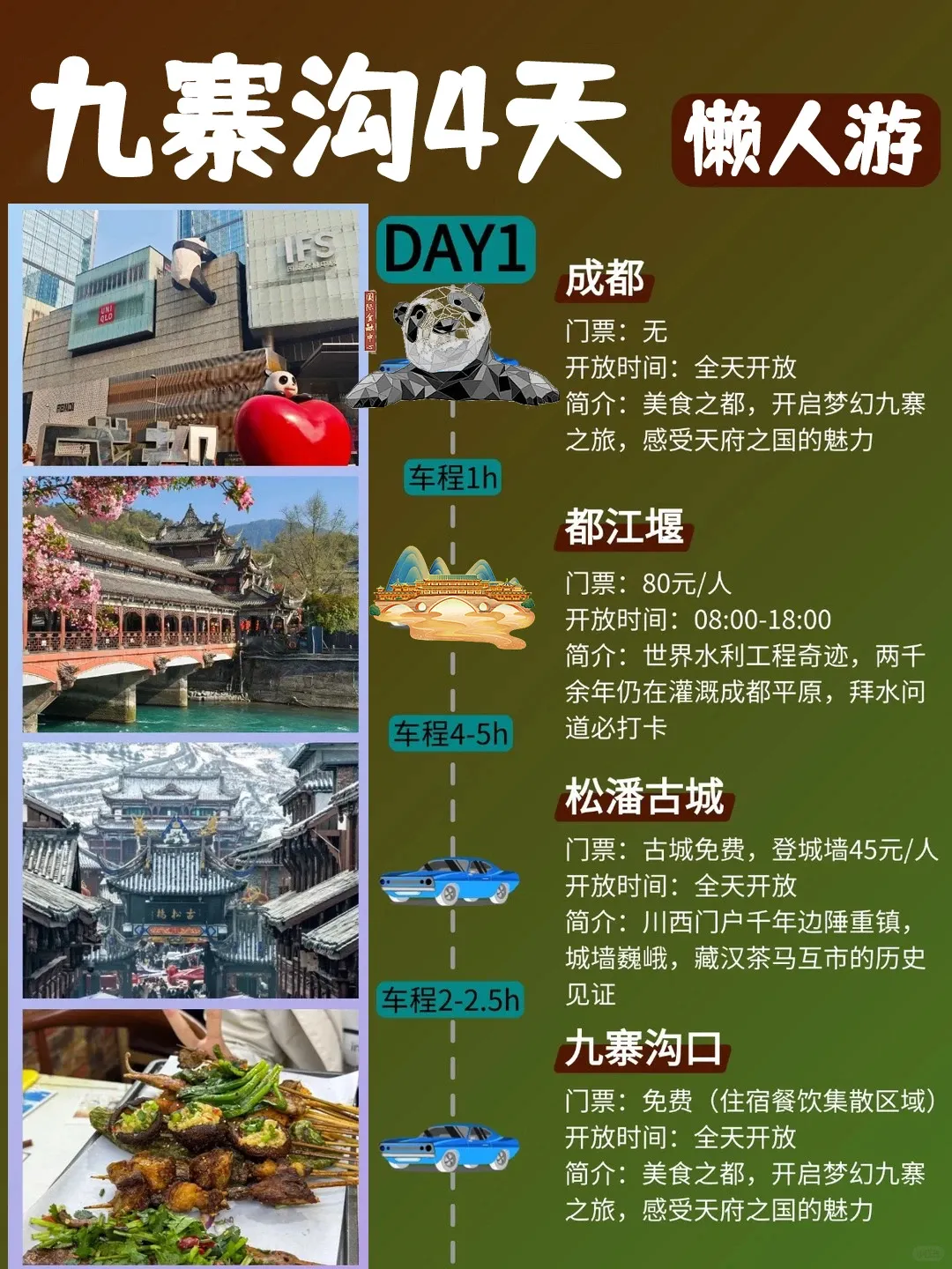 𝐃𝐚𝐲𝟏:成都 → 都江堰/熊猫乐园 → 松州古城 → 宿九寨沟口