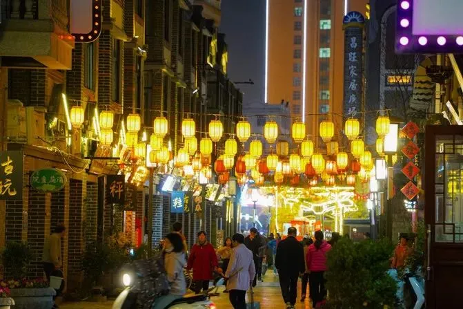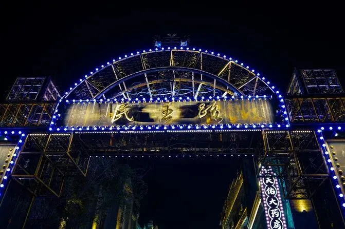 每当夜幕降临,老街上的灯光逐渐亮起,更添几分神秘与浪漫。此时的民主路老街,仿佛变成了一个梦幻的时空隧道,让人流连忘返。