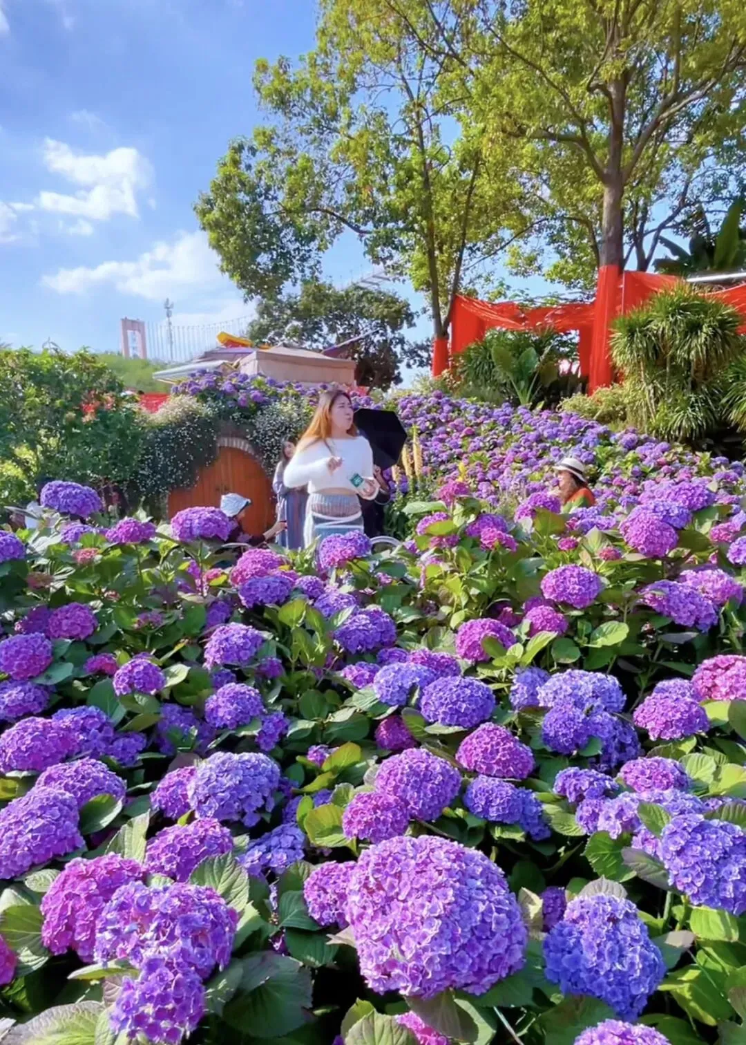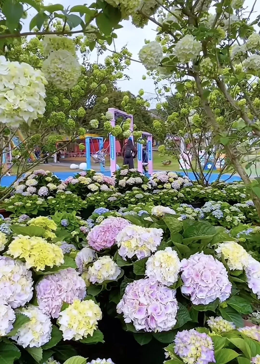 值得一提的是,无尽夏绣球的花语是“希望”与“永恒”,象征着团聚幸福和美满,赏花之余也可在花海间许下美好心愿。
