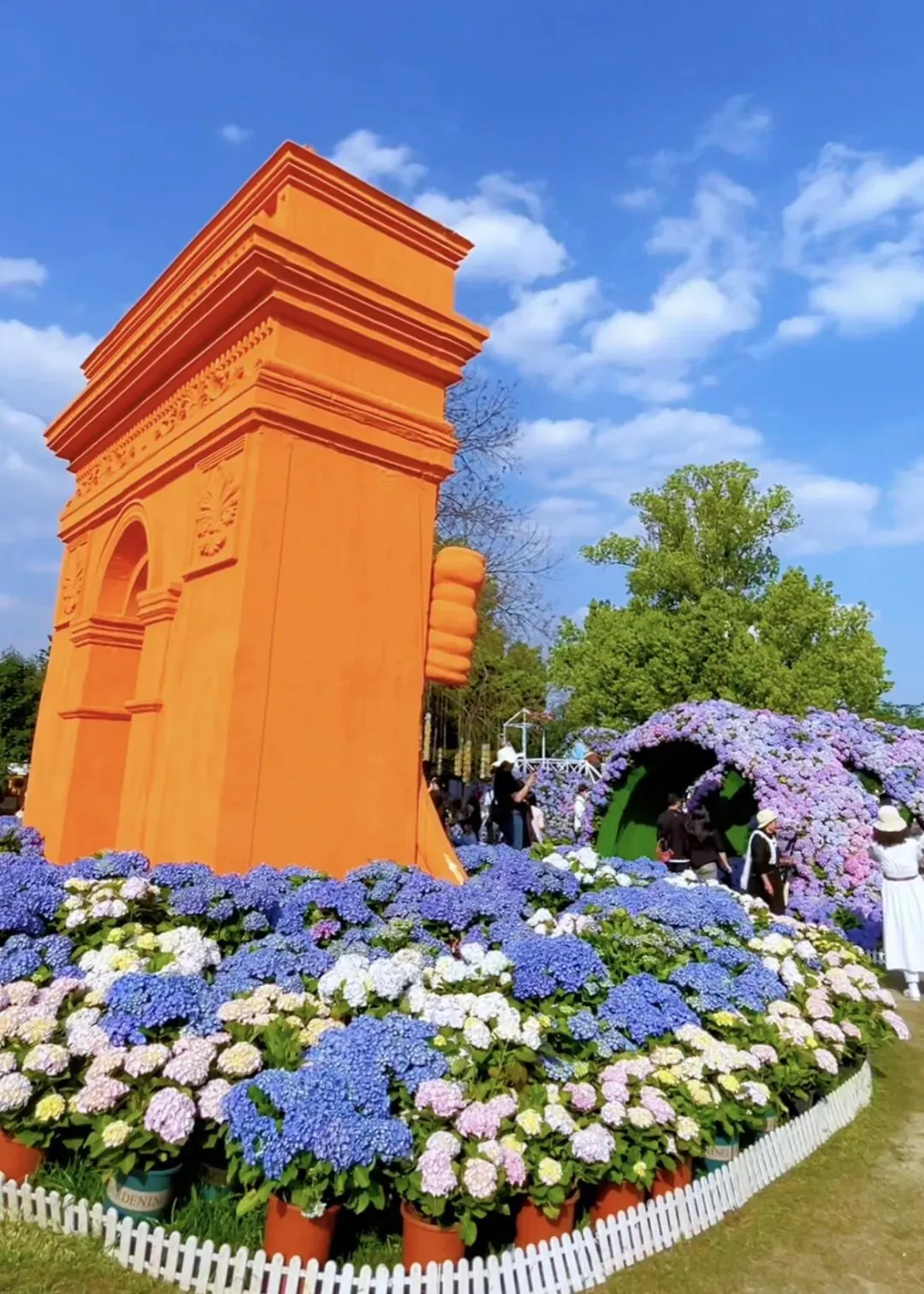 南门入园 → 玻璃桥下观赏木绣球(花期至4月中旬)→ 牡丹亭打卡 → 爱情宫殿拍照 → 樱花林漫步 → 霍比特小屋合影 → 绣球迷宫沉浸式赏花