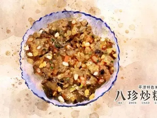 又称 “一团和气”,是宴席硬菜。地瓜粉炒至黏稠透明,裹满虾仁、鱿鱼、蟹肉、花生等八种食材,软糯入味,口感丰富有嚼劲。