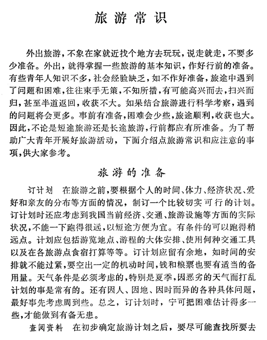 旧书分享|80年代的旅行指南之《青年旅游手册》