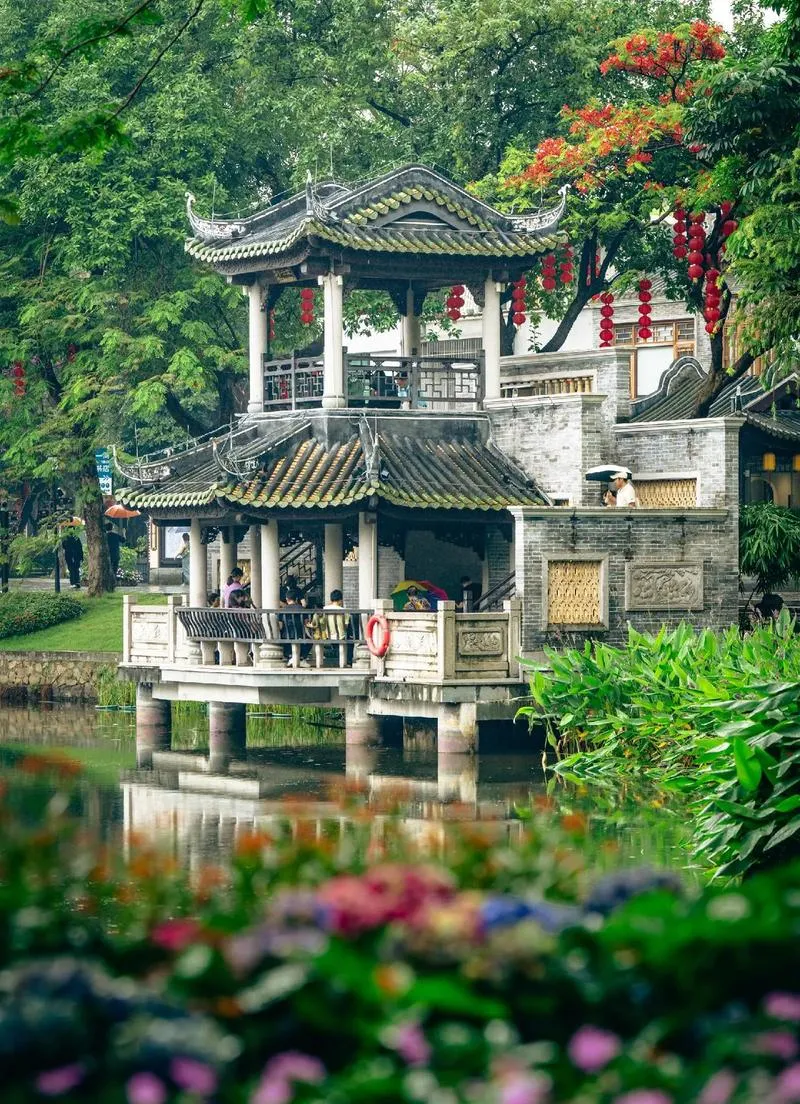 荔枝湾公园和石室圣心大教堂,这两个地方看起来没什么关系,但放在一起看你会发现,广州这座城市的包容性不是口号,是真的在生活里体现出来的。荔枝湾公园是岭南园林的典型,假山、流水、亭台楼阁,但你在那儿待一会儿会发现,本地人不是来看风景的,是来过日子的,有人在那儿练太极,有人在那儿唱粤剧,有人就是坐着发呆,这种"公园就是生活一部分"的状态,在其他城市很少见。
