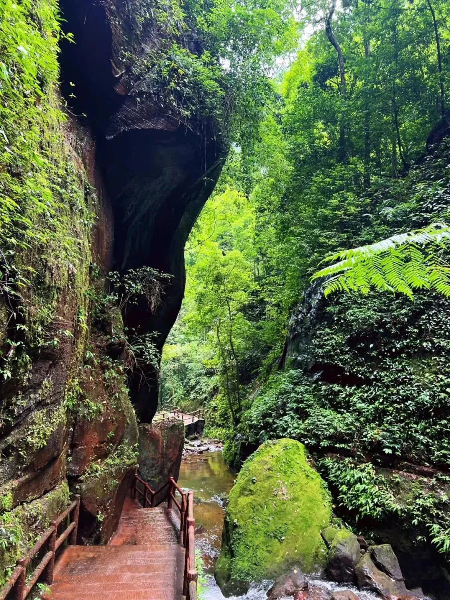 出游小贴士:景区内步道平缓,适合各类人群;建议穿浅色衣物,与丹霞红、竹海绿形成鲜明对比,拍照出片率超高;记得携带雨具,山间偶有阵雨。