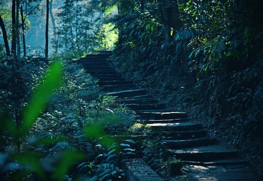 沿着山间步道前行,溪水潺潺,鸟鸣清脆,呼吸着山间的清新空气,仿佛置身于世外桃源。