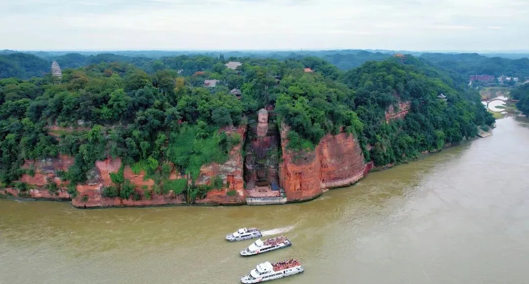 站在大佛脚下,远眺三江汇流的壮阔景象,江水奔腾不息,船只往来穿梭,山水相依,人文与自然完美交融。