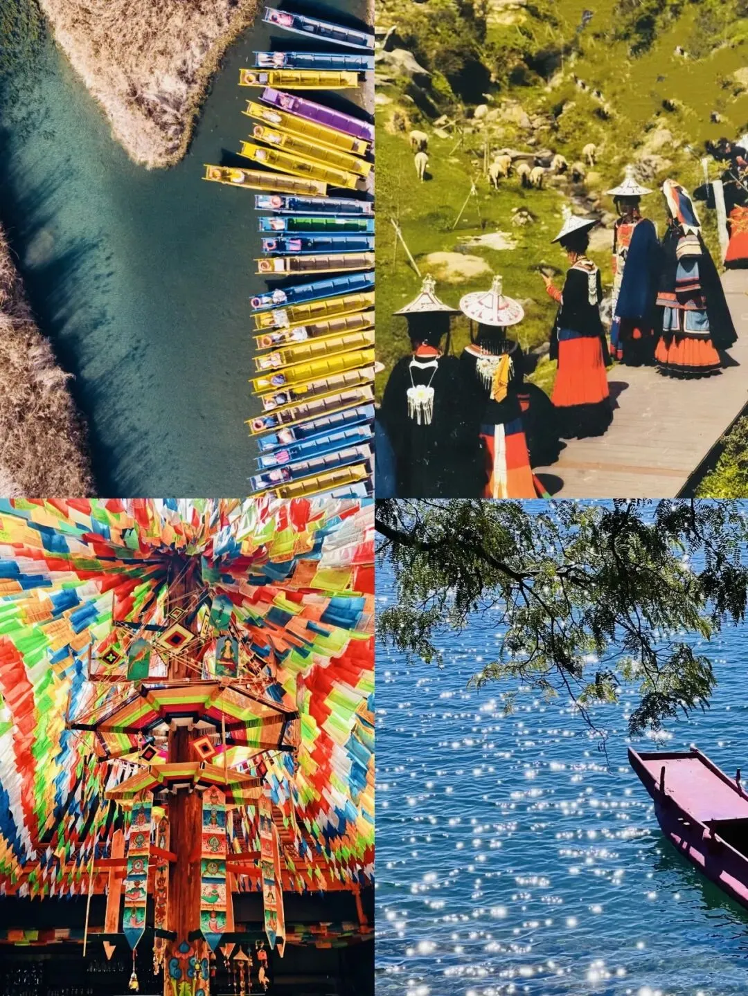 早起蹲一场泸沽湖日出,霞光刺破云层,洒在湖面上,波光粼粼,温柔到极致。坐猪槽船慢悠悠游湖,登里务比岛,逛里务比寺、土司墓,远离喧嚣,感受泸沽湖独有的静谧与神圣。