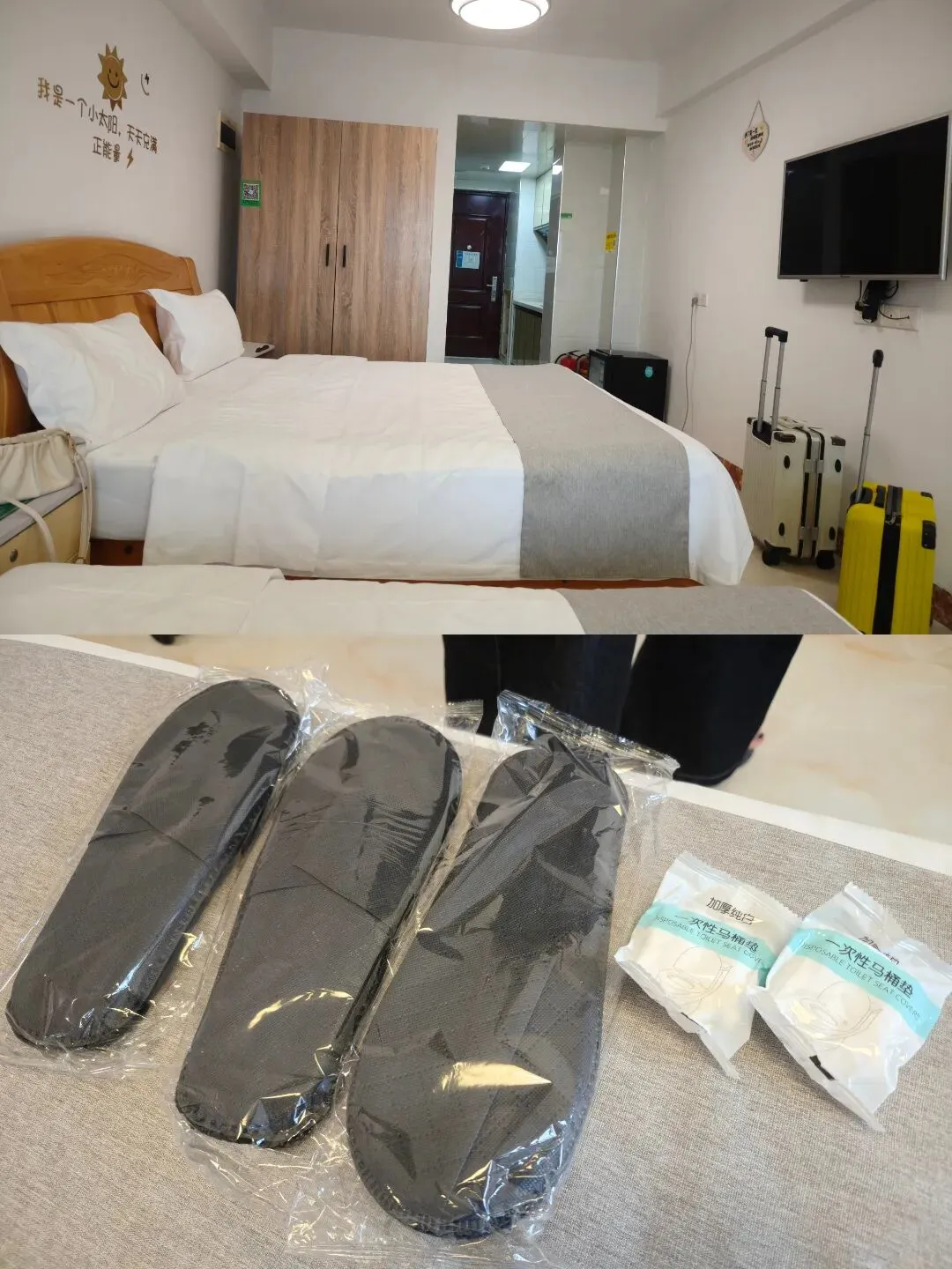 订的是华强广场的一家民宿,设备挺齐全的,环境也挺干净,还有个小冰箱,老板人很好,看到我们是几个女孩子,还特意给我们拿了一次性拖鞋和马桶垫,说女孩子比较爱干净;唯一不好的是,房间太不隔音了!隔壁的八卦都能听得一清二楚,还有外面马路上传来的各种声音,觉浅的人估计有点受不了,咱静总就是一夜未眠,而我和芳总呼呼大睡,哈哈哈……