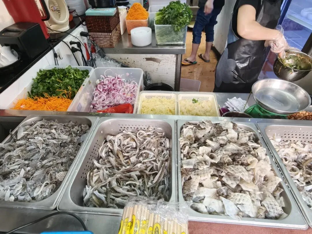 我们点了酸辣味,鱼皮吃起来 Q 弹薄脆,特别清爽,搭配配料口感更丰富。