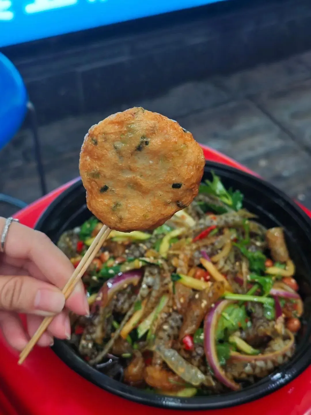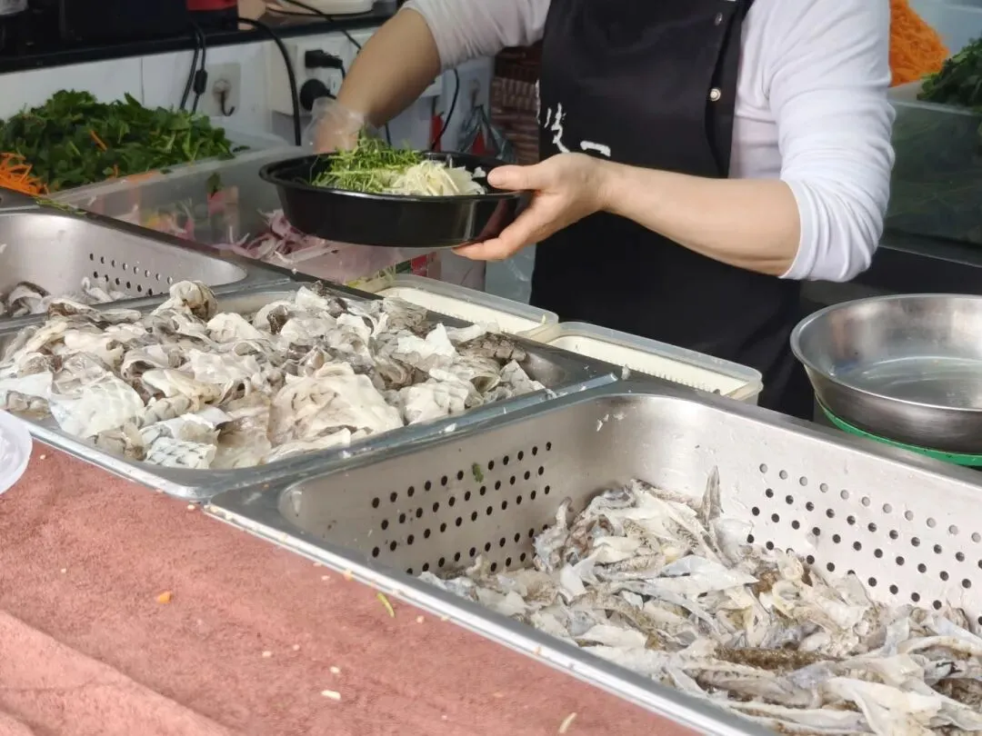 首先尝了顺德特色凉拌鱼皮,跟着网上推荐选了这家 “鱼皮一哥”。他家可以选双拼、三拼甚至四拼,还挺人性化,能一次试到不同口味。