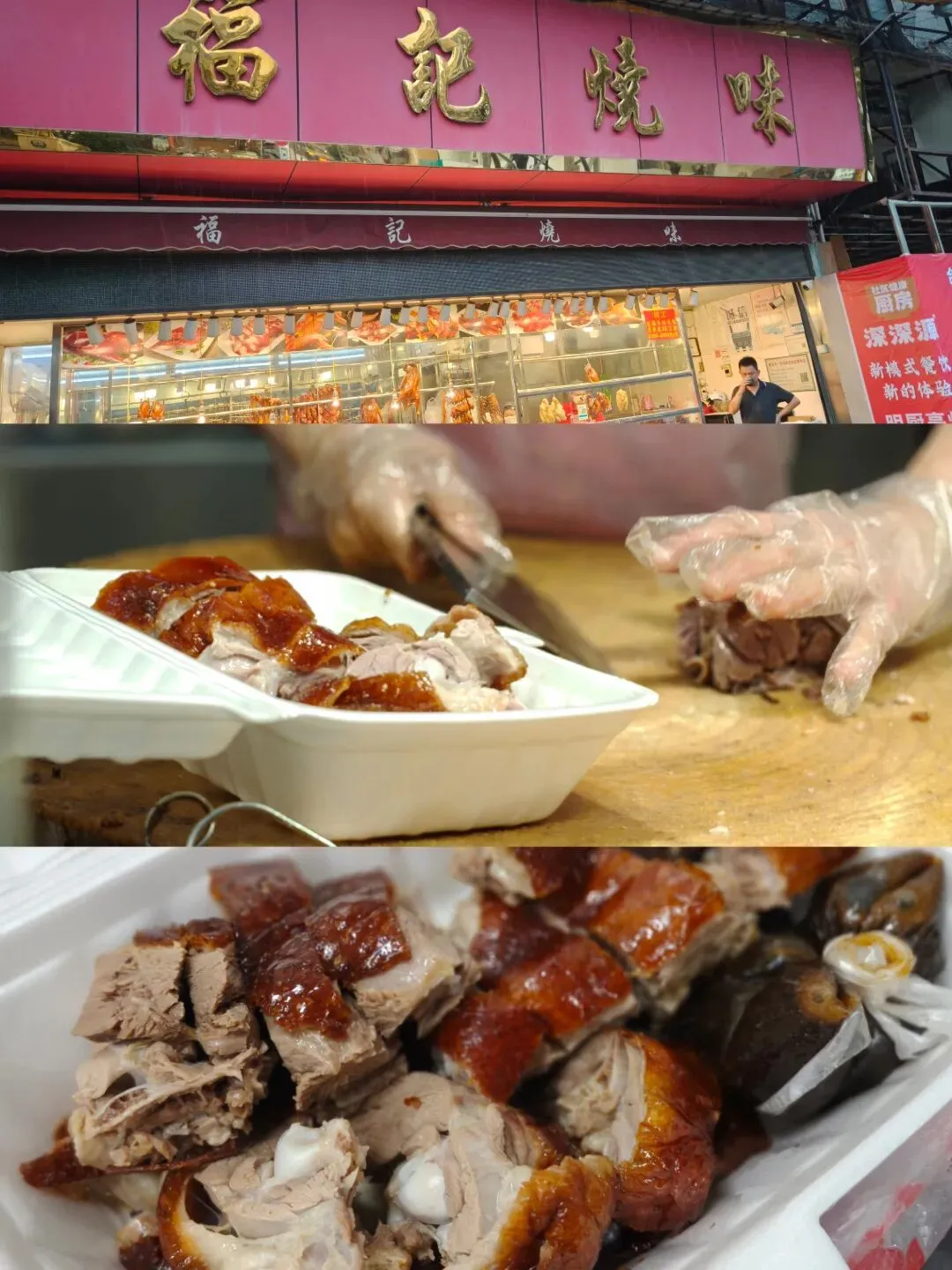 福记烧味在金榜街附近约1公里处(菜市场旁),是本地人推荐的一家烧卤店。四分之一只烧鹅约50元,新鲜出炉还冒着热气,趁热吃特别香!