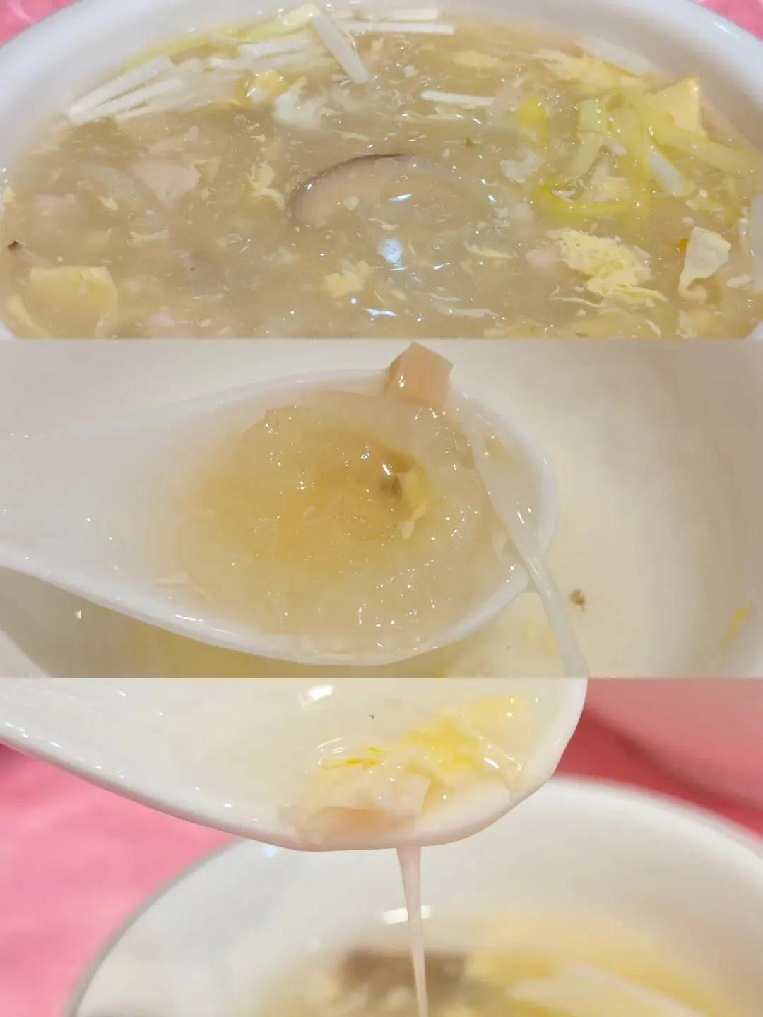 ❌ 三丝鱼肚羹:上的第一道菜,端上来我们都愣了,还以为是汤,甚至怀疑是不是上错了。