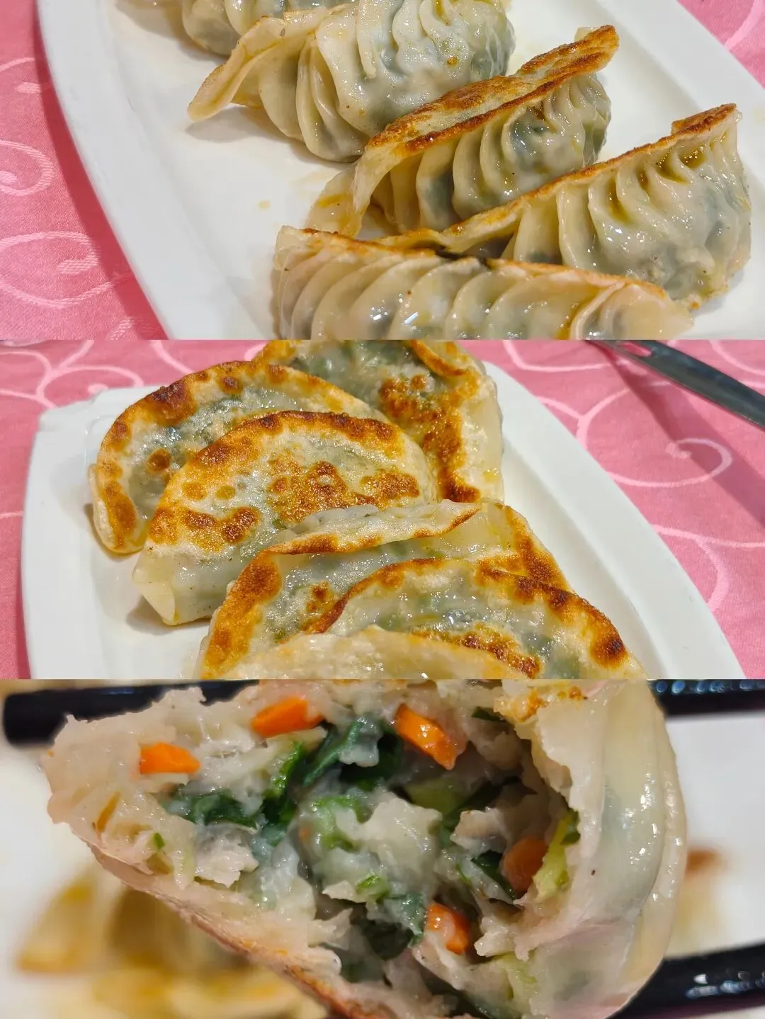✅煎饺:整体还不错,饺子煎得两面金黄,个头大馅料足,味道不错,就是不能多吃,容易腻。