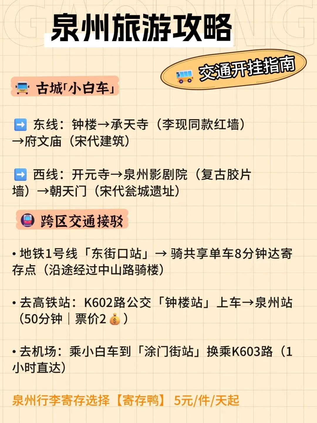 • 去高铁站:K602路公交「钟楼站」上车→泉州站(50分钟|票价2💰)