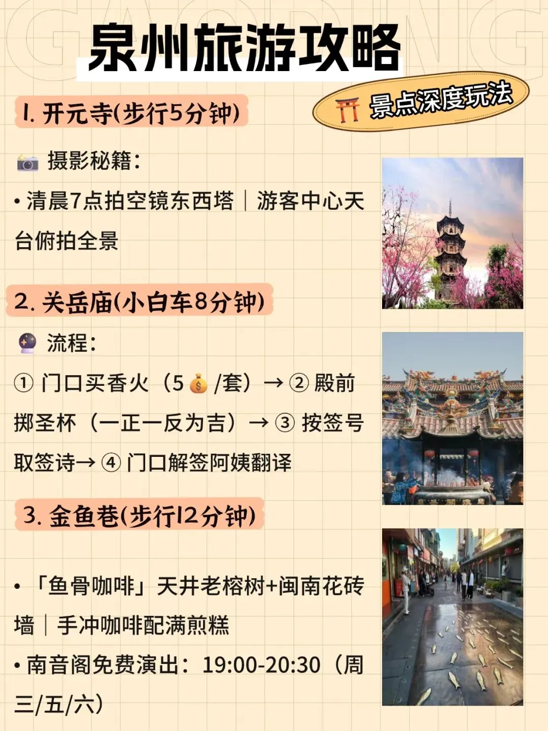 ➡️ 西线:开元寺→泉州影剧院(复古胶片墙)→朝天门(宋代瓮城遗址)