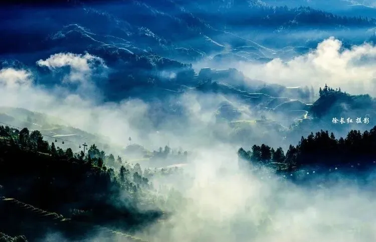 龙脊梯田的四季变化如同一幅动态的画卷,春水秋黄,夏绿冬雾,每个季节都有着不同的风情。而这里的居民,季季耕作,日出而作,日落而息,在这片古老的土地上,绘制着生活的画卷。