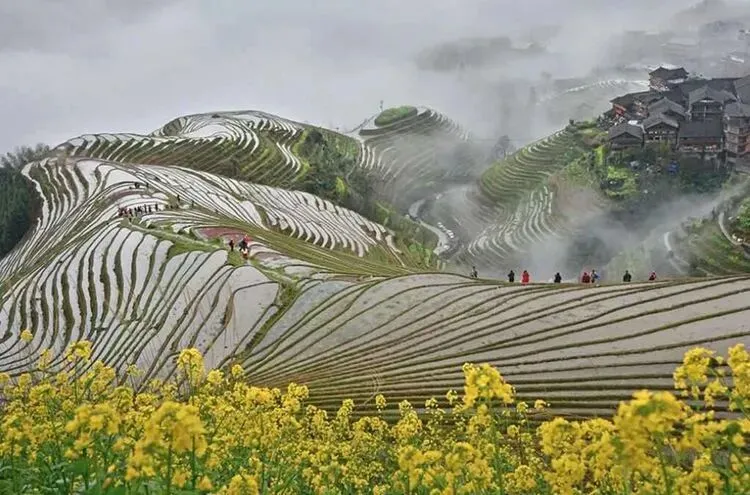 👉最佳季节 1、1-4月底:梯田内无农作物,下雨天有云雾缭绕的感觉,部分梯田种有油菜花,开花时间3月中下旬至4月底;2、5-6月中:梯田内会灌满水,在太阳反射下波光粼粼,俗称镜面梯田,六月初刚插秧下去,秧苗渺小,远处看着也还是波光粼粼的;3、7-9月中下旬:稻谷生长,漫山遍野绿油油的,有绿野仙踪的感觉,呈现出的是大规模的“抹茶绿色梯田”有种秒入宫崎骏动漫夏季!4、10月:金黄色的稻穗翻滚,非常壮观,是稻谷收割季节,呈现的是一片满山尽带黄金甲的“金色麦田”,10月20日左右收割!