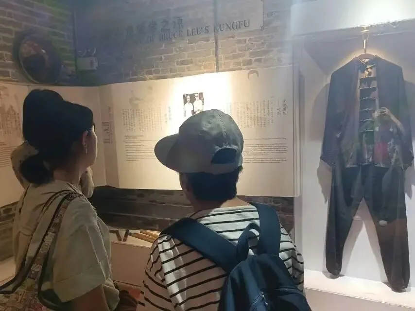 步入展览厅,“戏武世胄,粤韵风华”主题展以13个篇章娓娓讲述李小龙的传奇人生。从“李氏家族”到“少年得志”,再到“功夫巨星”,泛黄的电影海报、练功服、木人桩,以及循环播放的《精武门》《猛龙过江》片段,让人瞬间回到功夫片的黄金年代。我最感慨的是截拳道理念的展板——李小龙融合咏春与西洋格斗术,打破了传统武学的门派和框架,让中国武术被世界熟知。正如美国《时代》周刊所评价的,他是“百年地球十大文化偶像”之一,某种意义上,他就是中国文化的代名词。