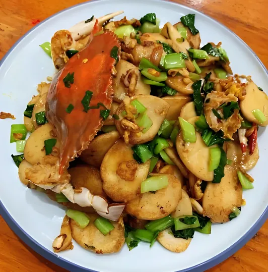 第四美食:三门青蟹炒年糕来台州不吃海鲜等于白来。三门青蟹是国家地理标志产品,壳薄肉厚,膏红脂满。用它炒出来的年糕,年糕吸饱了蟹的鲜味,比蟹还好吃!这道菜稍微有点贵,一只蟹加年糕可能要百来块,但绝对物超所值。建议去三门县城或者石塘的渔家乐吃,现捕现做。