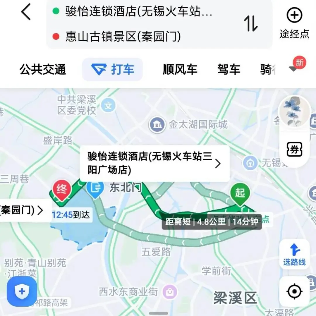 路程:酒店→惠山古镇(大约14min到达)