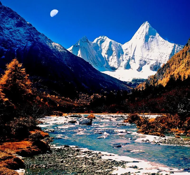 稻城亚丁是另一个层级的东西。很多人说它是蓝色星球上的最后一片净土,这话听着夸张但不算错,因为当你站在牛奶海旁边,看到仙乃日、央迈勇、夏诺多吉三座雪山围着你,湖水蓝得不真实,空气稀薄到每一步都要喘,那种感觉不是美,是一种接近宗教性的震撼,你会觉得人类在这种尺度面前太渺小了。