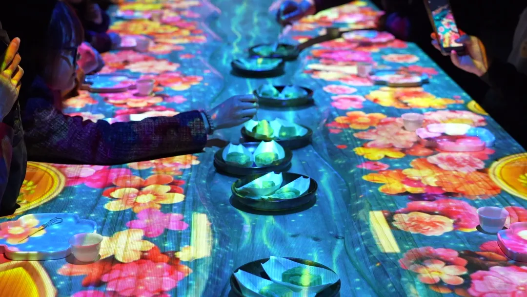 文化园内重点推出的文旅演艺《花开·江天暮雪》以潇湘八景之江天暮雪画卷中的历史脉络作为叙事轴,讲述探寻画中蓑笠翁的故事。通过《序·山墙入境》《前庭探秘》《书院思辨》《夜宴》《乐坊笙歌》五个戏剧微剧场,演绎了苏轼、秦观、米芾、朱熹、张栻等人与湖南的情缘,以及在湖湘文化中的贡献。游客在这里可以体验到沉浸式的宋韵文化,享受一场穿越时空的文艺之旅。