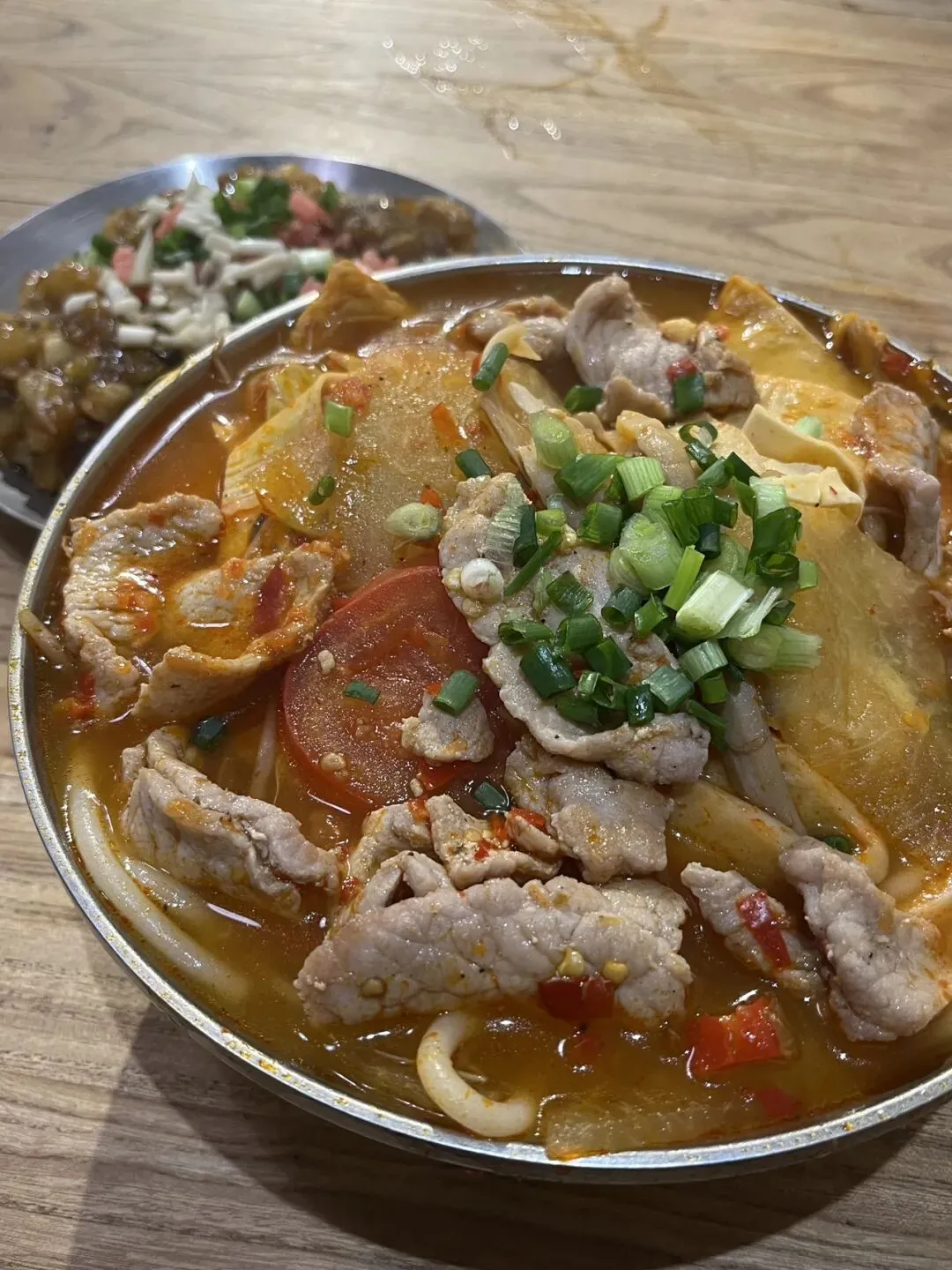 因为我朋友不能吃辣专门找了一家看起来有卖不辣的菜的店…叫做荔山食堂…味道马马虎虎,但是没想到他们粉本身就是辣椒汤汁,我朋友疯狂崩溃…