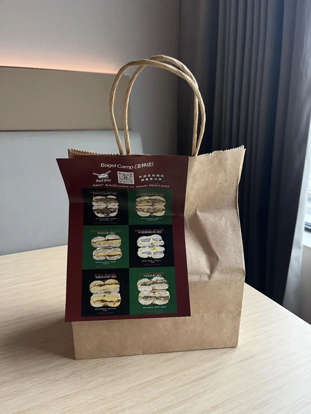 早上起来要去赶动车去黄龙,所以点了外卖,这个贝果好吃极了。