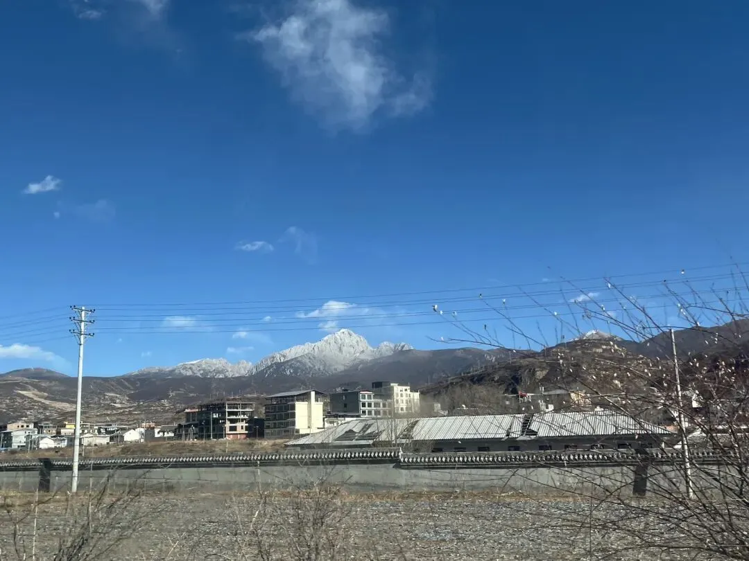因为是冬季去的,沿途都没有什么绿色,跟去北方玩的时候景色很像,但时不时能看到远处的雪山。