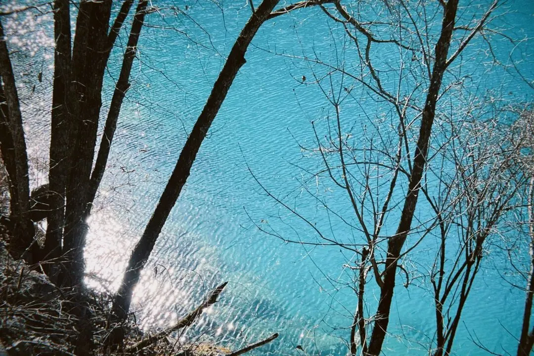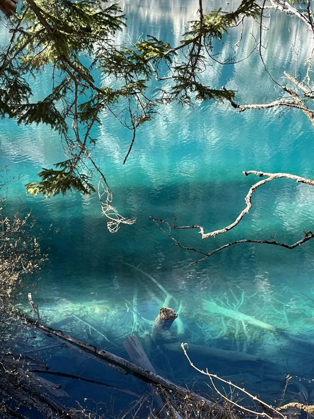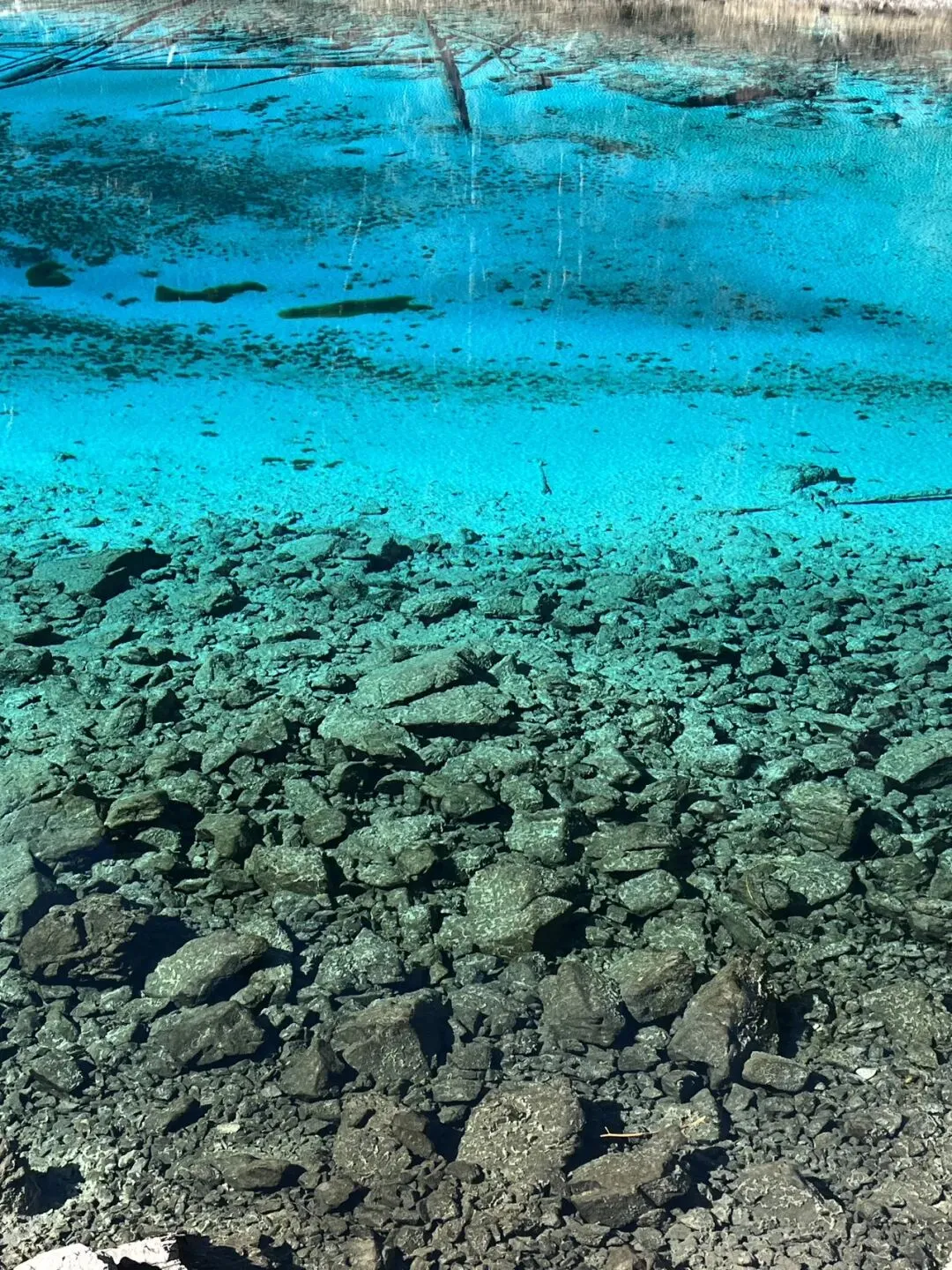这里有钙化的树木沉底,据说叫做“水下森林”。