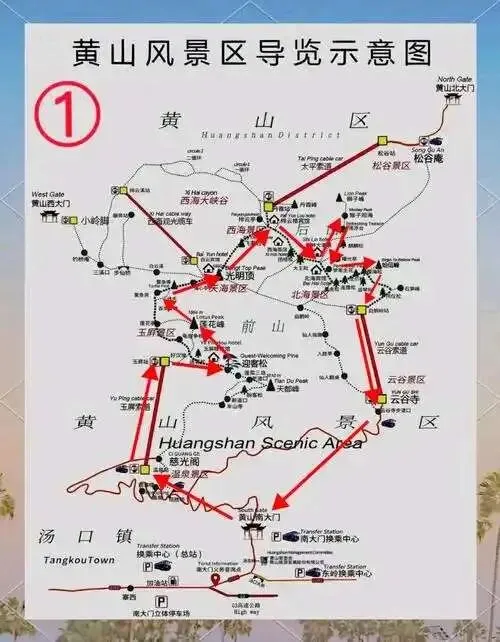 3. 莲花峰、天都峰为黄山主峰,体力不足可远观,无需强行登顶