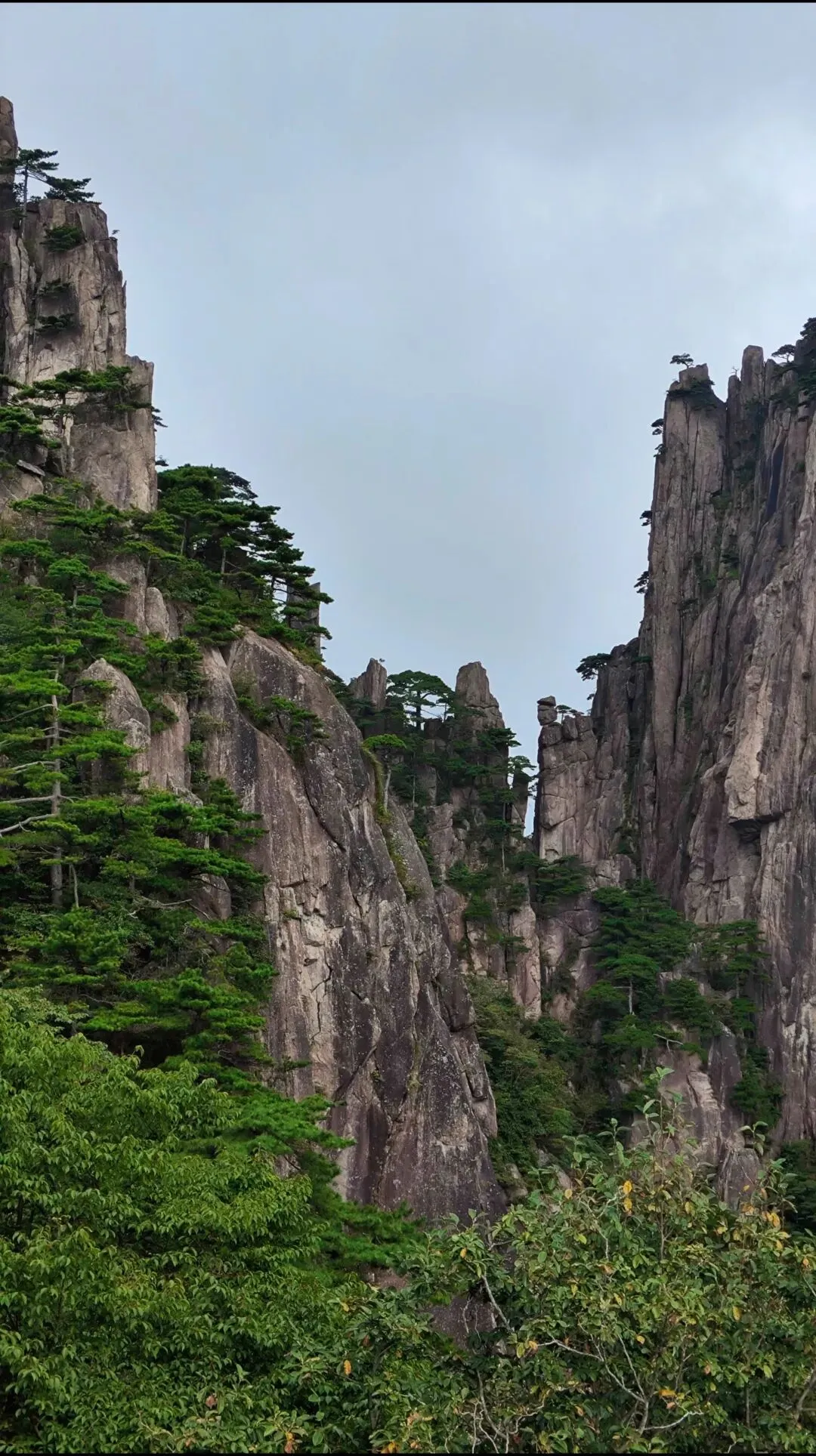 云谷索道上山→白鹅岭→东海大峡谷→石笋峰→黑虎松→猴子观海→西海大峡谷(徒步下至谷底)→乘坐谷底小火车直达光明顶→光明顶打卡→鳌鱼峰→莲花峰→天都峰、迎客松→玉屏索道下山