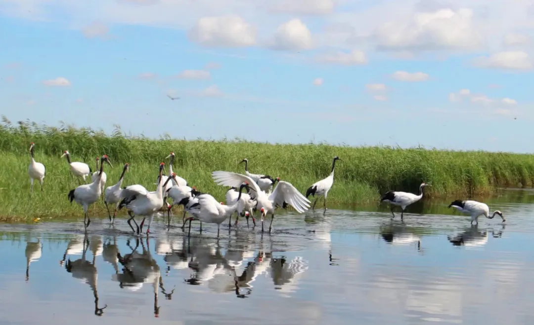 新晋 5A 的仙鹤秘境,是国家 5A 级景区、国际重要湿地,位于齐齐哈尔市。栖息鸟类260 余种,其中鹤类6 种,是全球最大的丹顶鹤繁殖地与亚洲第一大芦苇湿地,被誉为 “世界大湿地,中国鹤家乡”。