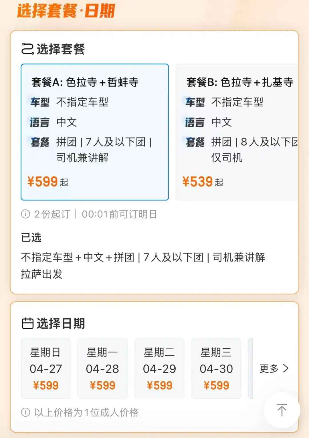 大家要是想拼个哲蚌寺一起去的话,可以把这个行程色拉寺的行程空出去一天,去报X程上的这种套餐,会有讲解服务,如果不需要的话就可以单去。