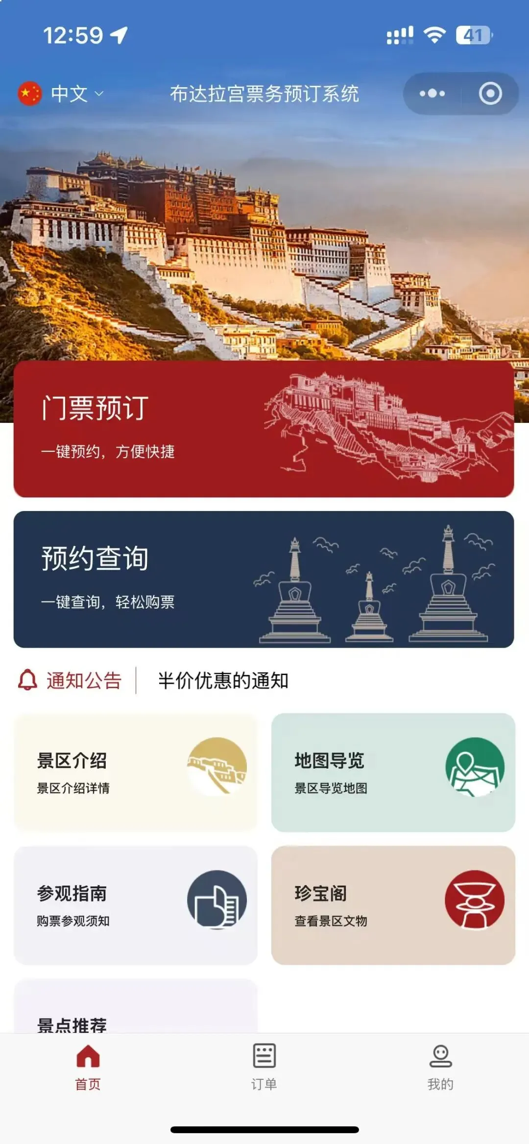 旺季(5~10月)提前七天在微信搜“布达拉宫票务预定系统” 抢票。