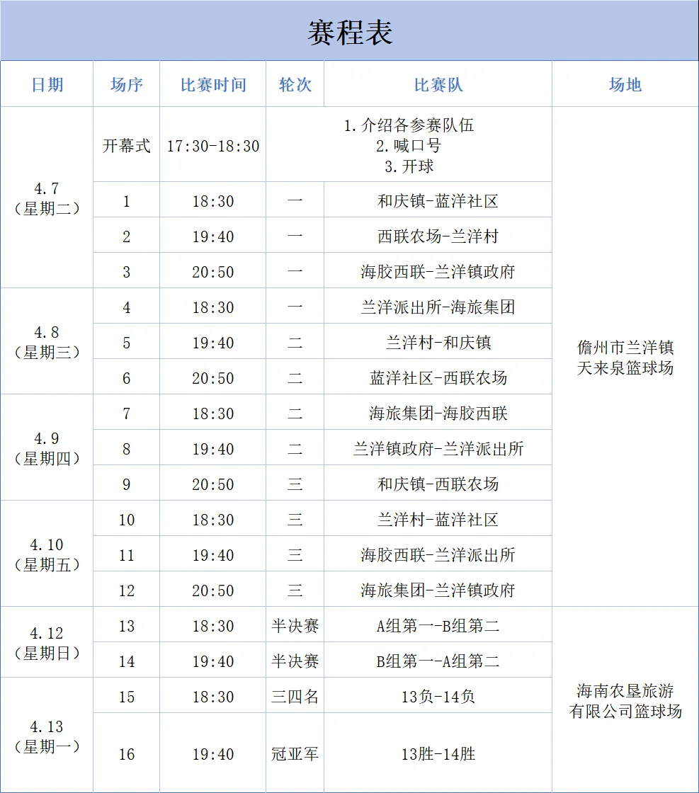 活动地点:天来泉篮球场、海旅集团篮球场