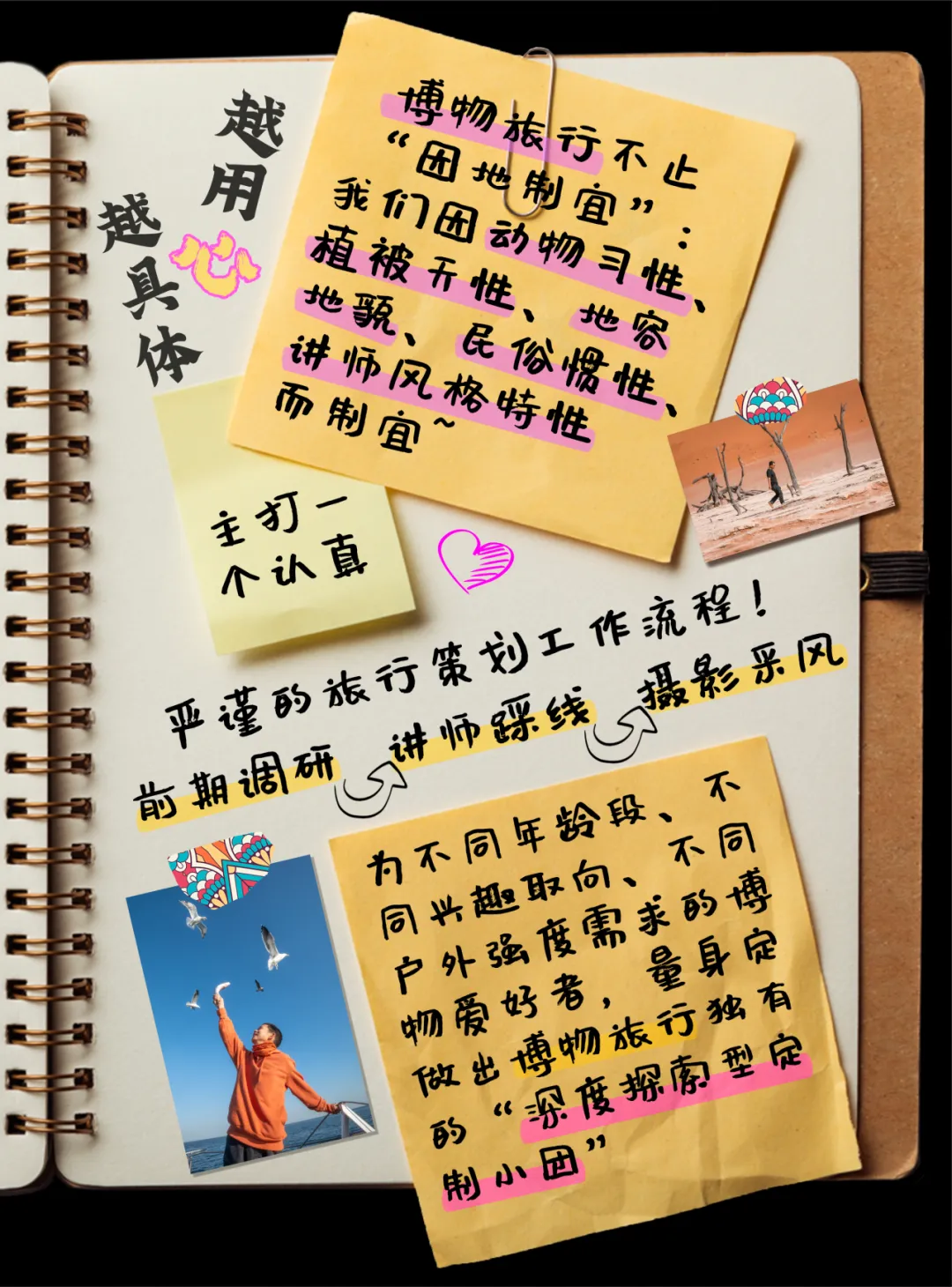 12年来,博物旅行秉承《博物》精神,立足博物学视角,以 探新、快乐 为独特调性,深耕旅游全流程服务的策划与执行,精心打磨每段旅程。