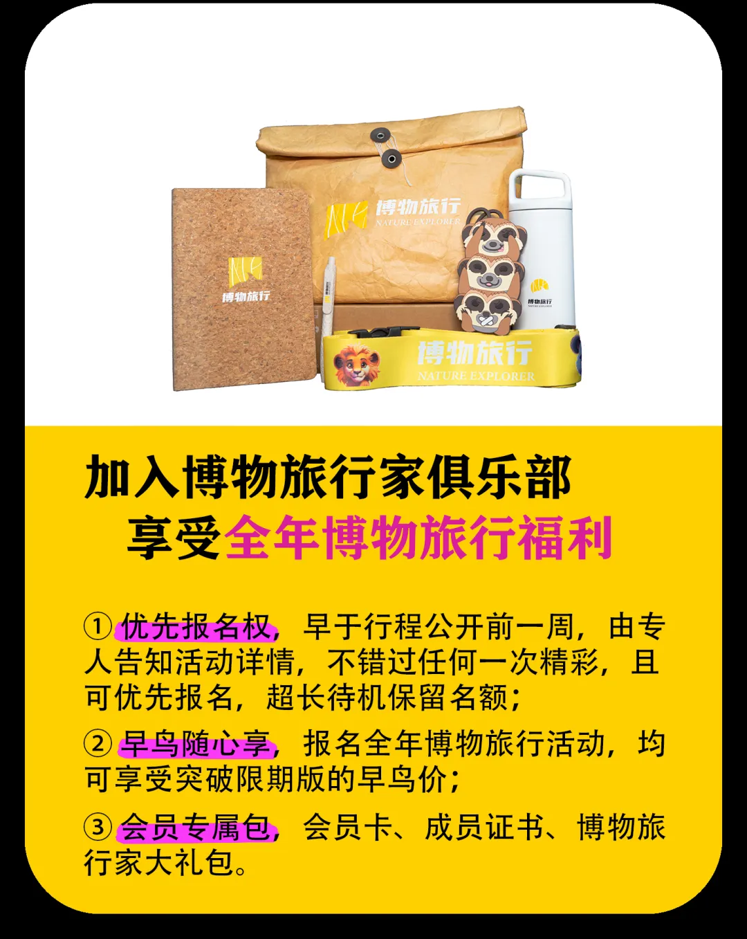 这也是为什么,博物旅行对所有路线的策划都竭尽所能,只选择最有助于建立我们与目的地之间链接的体验;同时用心甄选出,博物爱好者兴趣最浓厚的几个点,巧妙地加入行程;最重要的是以博物讲师的视野,带大家用“正确的打开方式”探索当地自然人文。