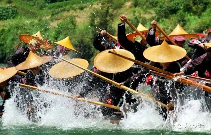 乐山 · 龙舟节 四川的龙舟赛不同于湖北,龙舟抢红是激动人心的名场面。 只听一声炮响,数船齐发,众人奋勇挥桨,争先恐后,碧波翻滚,浪花飞腾,遍河一片“嗨嗨嗨嗨”的急促号子声,一只只龙舟犹如蛟龙闹海。但几分钟过后,就分出了高下,强劲者遥遥领先。抢红游江过后,停泊的几十条花船慢慢散开。鞭炮响处,一只只鸭子纷纷被抛入水中,一条条龙舟便划上去争抢,哪条船抢到的鸭子愈多愈受观众青睐。