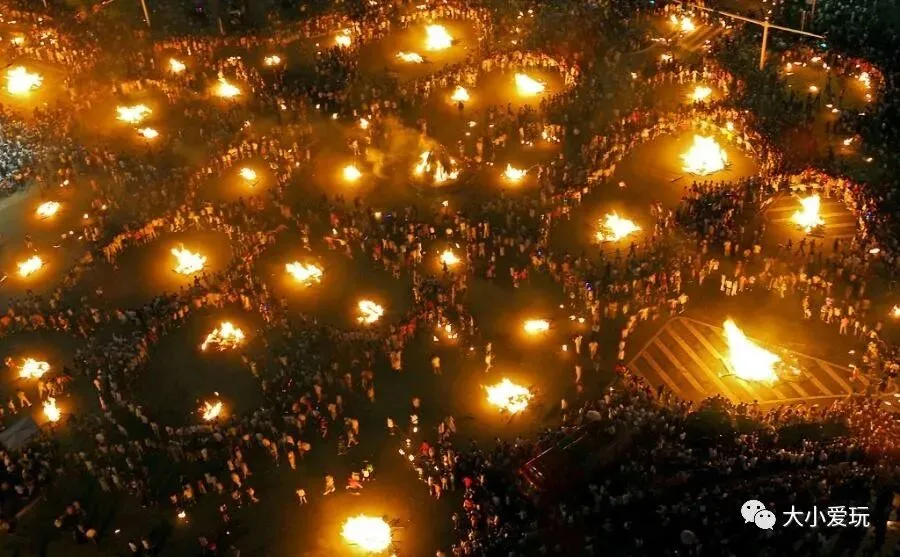 云南 · 火把节 云南这个多民族地区很有意思,既有泼水节,又有火把节。火把节的主要活动有斗牛、斗羊、斗鸡、赛马、摔跤、歌舞表演、选美等,热闹非凡。当地人戏称其为“东方狂欢节”。 彝族火把节一般历时三天三夜,分为迎火、玩火、送火三个阶段。每个晚上吃过晚饭,首先由某一家开始点燃火把,然后就争先恐后地燃起火把往村外走,人们唱起火把歌,歌声随着火把的漫延响彻山谷。随后按约定俗成的方向又形成一条火龙来到公共娱乐场地,他们将火把集中起来燃成一堆大火,全寨人围着火堆,快乐地跳舞游戏。