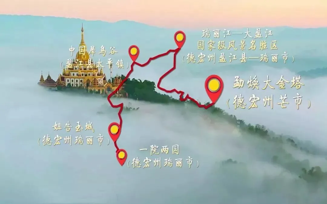 此外,在这条线路上,你可以感受有着“中国的亚马逊”的瑞丽江—大盈江国家级风景名胜区的自然风光,和孔雀不期而遇、看犀鸟嬉戏打闹;还可以在姐告玉城体会玉石的魅力,在银井村感受“一院两国”的边境风情,在归临山庄的阳台上观赏到最迷人的星空。