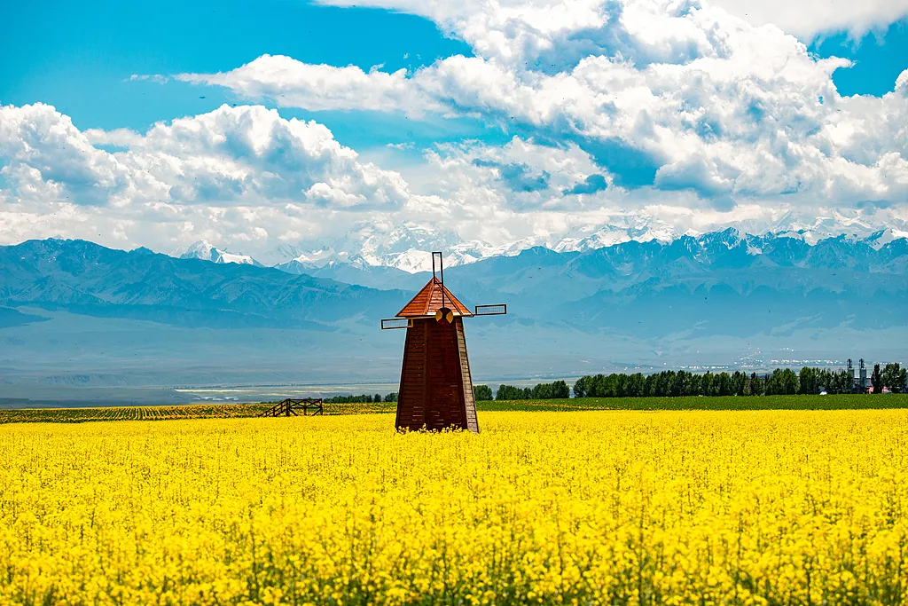 - ✓7-8月:草原进入全盛期,昭苏油菜花、紫苏花海怒放,气候凉爽,是旺季。