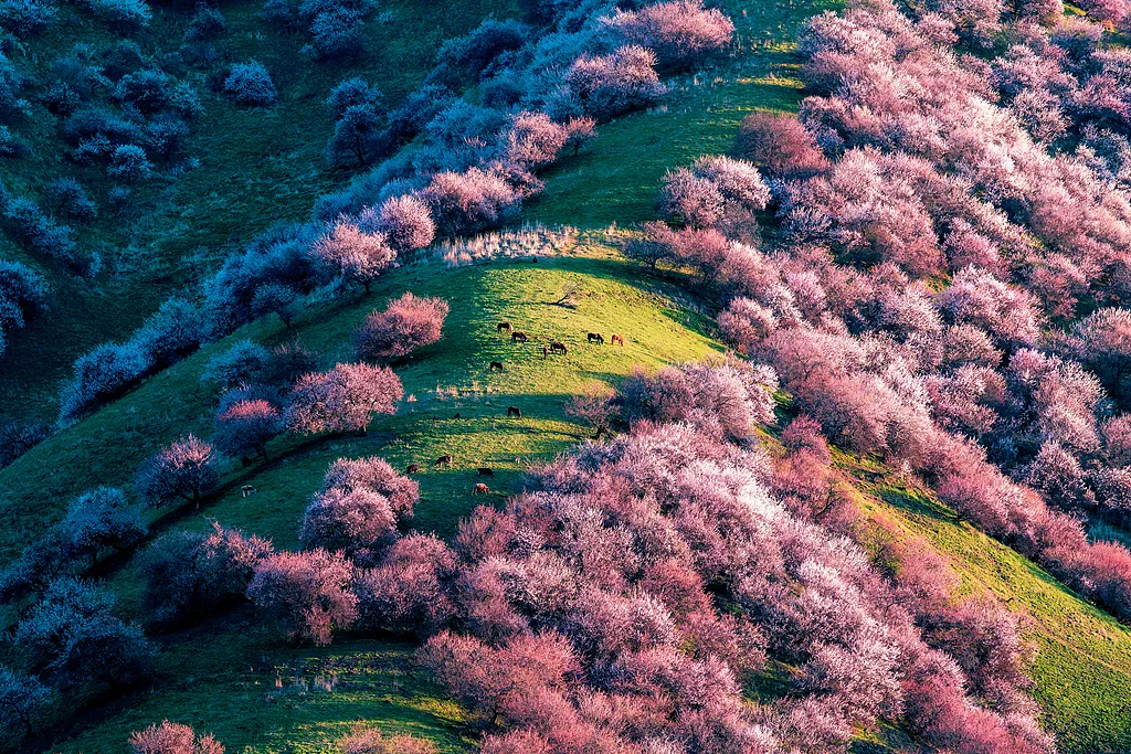 - ✓4月初:吐尔根杏花沟野杏花盛开。