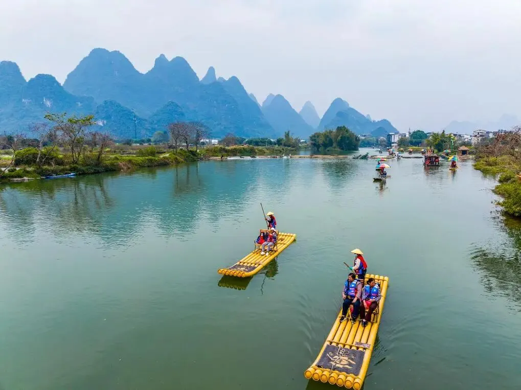 - 概况:漓江最美支流,以人工手撑竹筏、宁静的田园风光为特色,被称为“小漓江”。