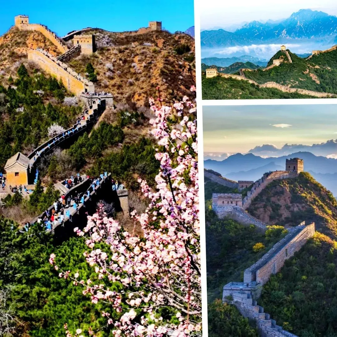 饭后直奔金山岭长城。正值第十四届杏花节期间(持续至5月5日),傍晚时分的长城在落日余晖与杏花映衬下格外壮美。