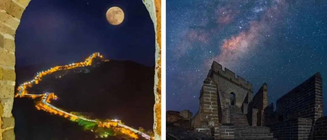古朴的长城在灯光与夜色中呈现出截然不同的美。