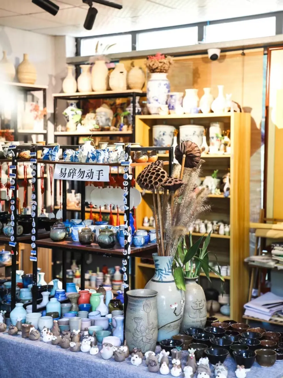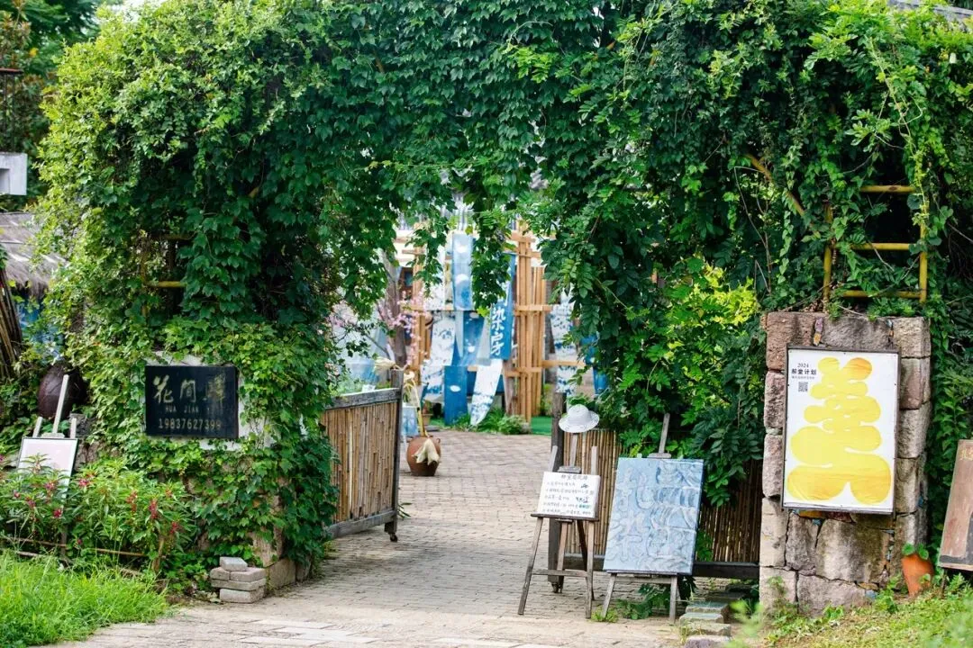 花间驿客栈:花间驿是一座具有中国传统建筑韵味儿的独立院落,三面环塘,四季有花;院内有安静舒适且带有手工蓝染特色客房12间。外部环境舒朗雅致,鲜花和艺术装置点缀其间,富于浪漫情怀和诗意情调;其装饰风格独特,田园情调与江南灵韵交织、古朴粗犷与艺术构思融合,琴韵缭绕于陶制器具中,闲情浸润在清茶淡盏内。